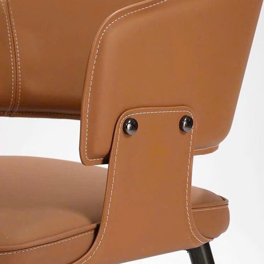 Chất liệu: Tựa lưng bọc da yên ngựa cao cấp, nệm ngồi bọc da dê mềm mại, chân thép sơn tĩnh điện.