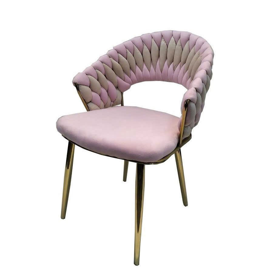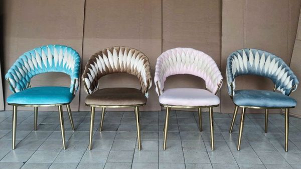 Ghế ăn VSW02 sở hữu thiết kế độc đáo với phần tựa và tay ghế đan xen họa tiết vảy cá bằng nhung phối hai tông màu tinh tế. Kiểu dáng vòng cung nâng đỡ lưng và tay giúp mang lại trải nghiệm ngồi cực kỳ thoải mái. Phần chân thép mạ vàng bóng sáng giúp tôn lên vẻ đẹp cao cấp, thời thượng, thích hợp cho bàn ăn sang trọng, khách sạn, showroom hoặc không gian tiếp khách.