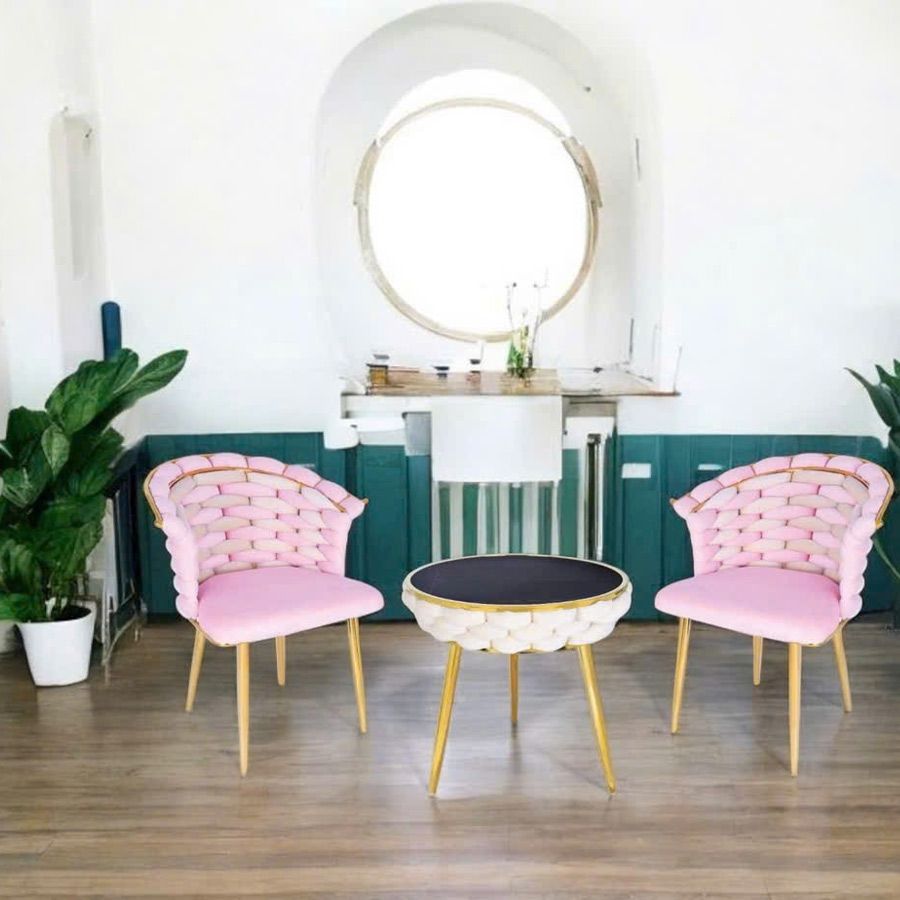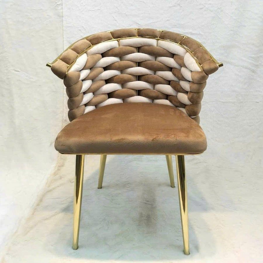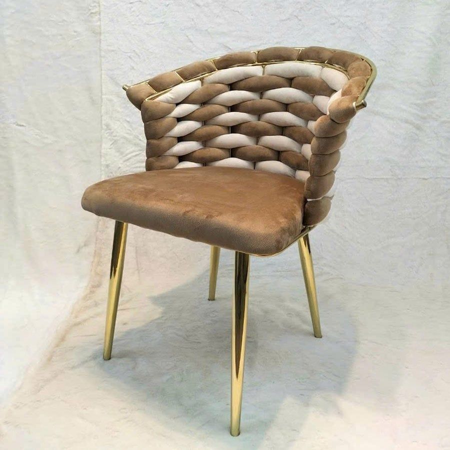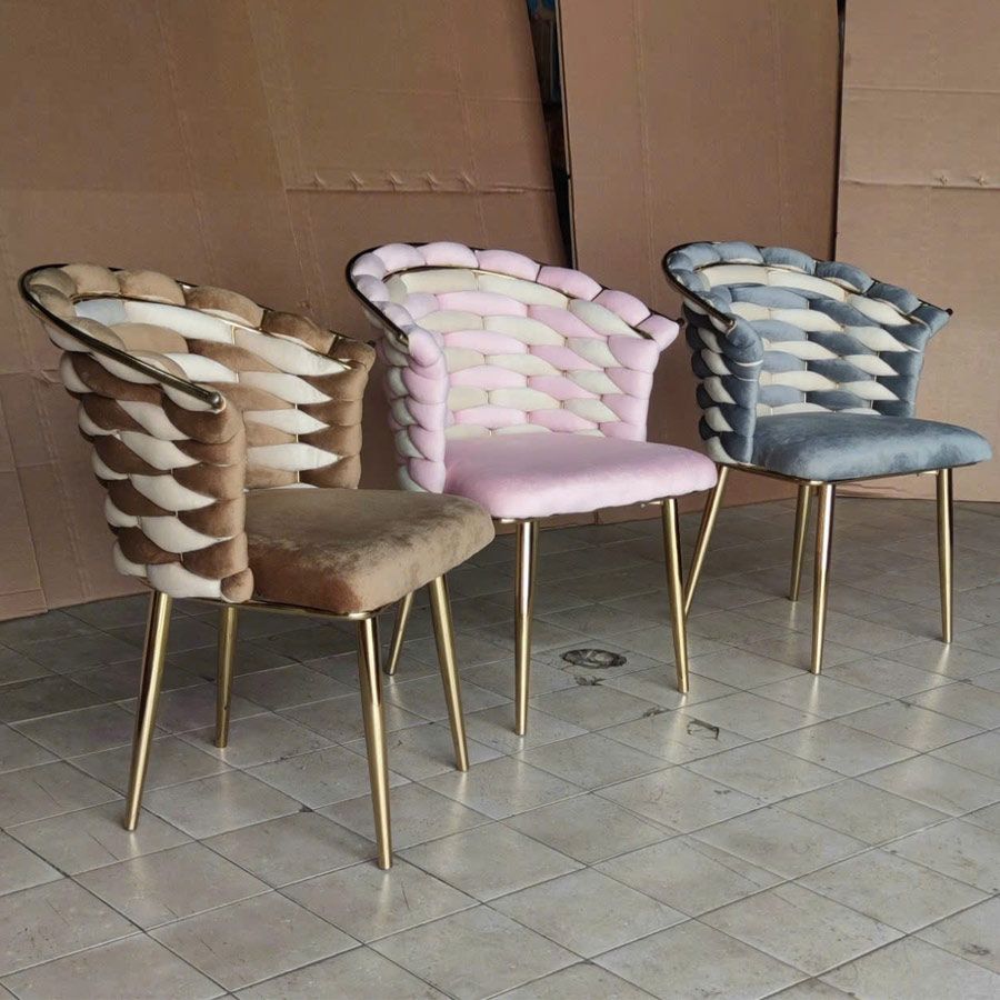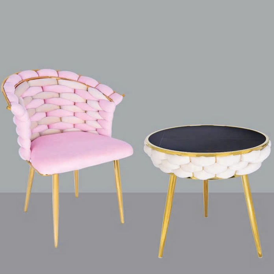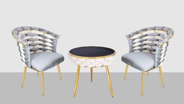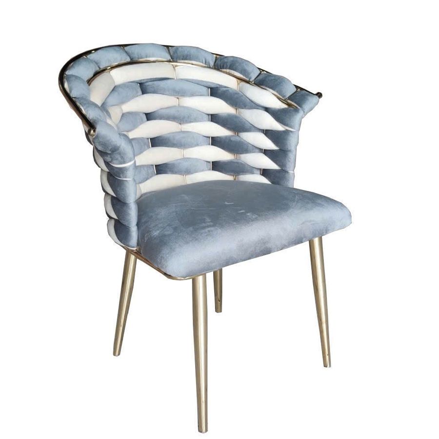 Chất liệu: Ghế bọc vải nhung phối hai màu cao cấp, chân thép xi mạ vàng