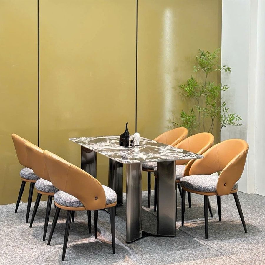 Ghế ăn VNC89 là lựa chọn lý tưởng cho không gian sống hiện đại, nơi bạn cần sự kết hợp giữa tính thẩm mỹ và sự tiện dụng. Thiết kế phối da – vải độc đáo, màu sắc trẻ trung và chất liệu cao cấp giúp mẫu ghế này trở thành điểm nhấn đầy phong cách cho bất kỳ phòng ăn nào.