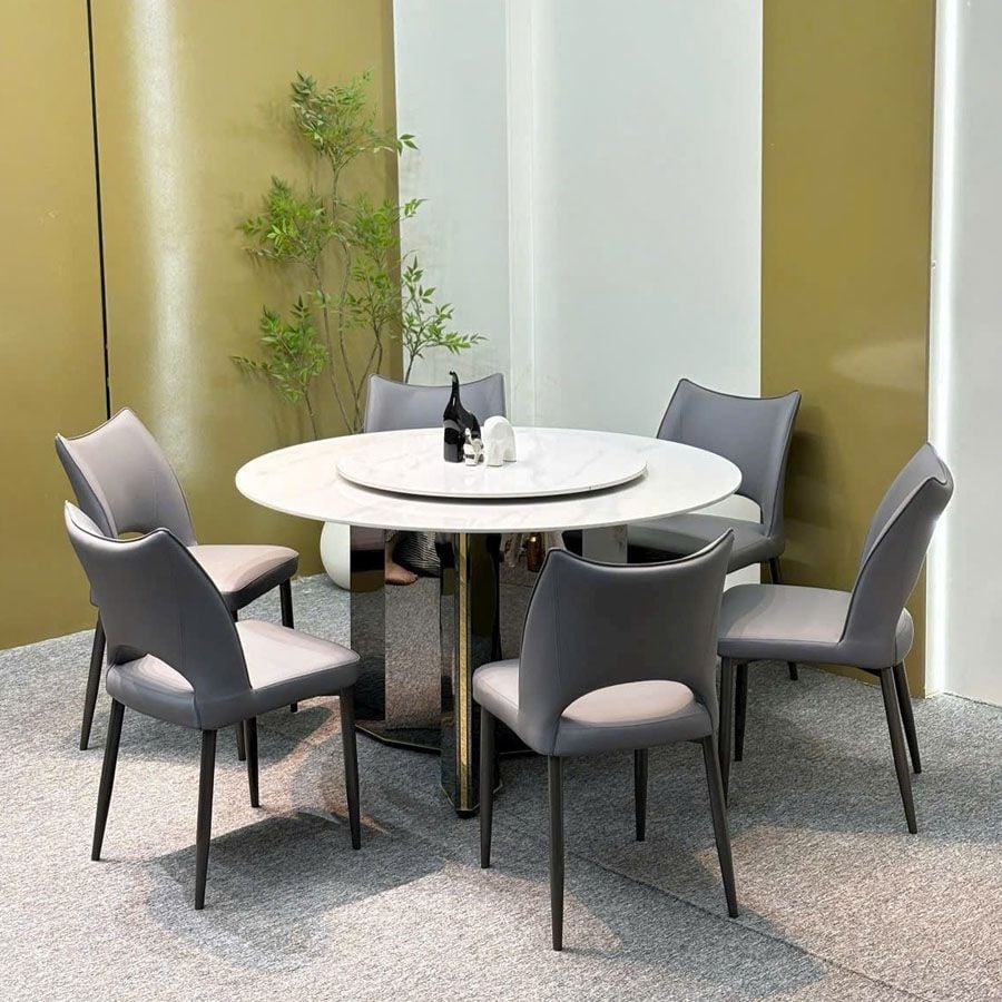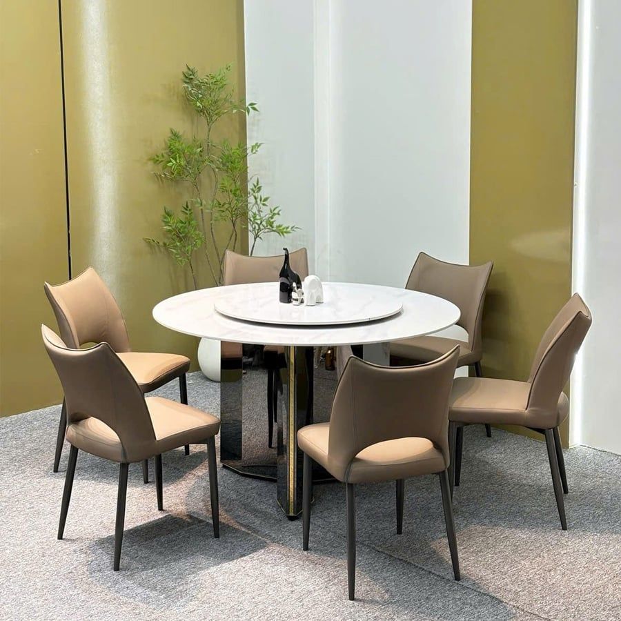 Ghế ăn VNC98 nổi bật với phần lưng ghế được tạo hình đục thoáng độc đáo, giúp tạo cảm giác rộng rãi và hiện đại cho không gian sống. Thiết kế uốn cong tinh tế cùng lớp da PU phối vải thô cao cấp không chỉ tạo sự sang trọng mà còn đem lại trải nghiệm ngồi êm ái, thoáng khí. Ghế mang dáng vẻ thanh thoát nhưng không kém phần chắc chắn nhờ khung chân titan phủ bóng cao cấp.