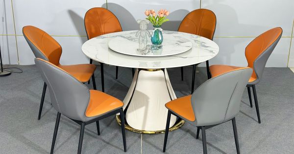 - Chất liệu da công nghiệp cao cấp: Da công nghiệp thương mại chống nước và dễ vệ sinh, giữ cho ghế luôn mới mẻ. Lớp đệm có độ hồi đàn cao mang đến cảm giác êm ái, lý tưởng cho các bữa ăn gia đình hay những buổi tiệc kéo dài.