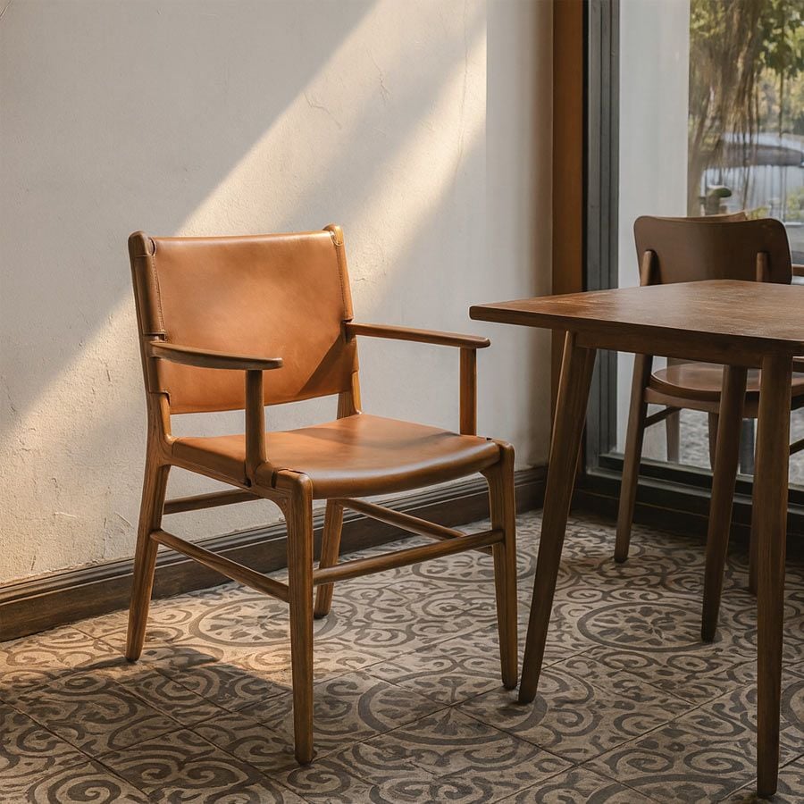 Ghế ăn da yên ngựa Fenwich DW05 là thiết kế cao cấp dành cho những ai yêu thích vẻ đẹp mộc mạc, sang trọng và đậm chất thủ công. Với phần tay vịn liền khung, ghế mang đến trải nghiệm ngồi thoải mái, thư giãn và chuẩn phong cách nội thất Bắc Âu. Kết hợp da yên ngựa mềm mại với khung gỗ sồi chắc chắn, sản phẩm tôn lên vẻ thanh lịch và đẳng cấp cho mọi không gian sử dụng.