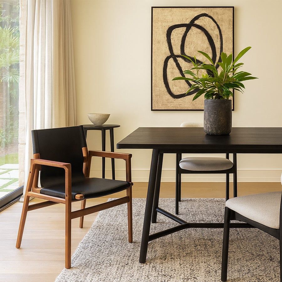 Ghế ăn Ipanema mang đến hơi thở mới cho không gian nội thất với thiết kế tối giản nhưng đầy tinh tế. Phần khung ghế làm từ gỗ sồi Mỹ tự nhiên, được xử lý tỉ mỉ để đảm bảo độ bền và vẻ đẹp nguyên bản. Tựa lưng và mặt ngồi sử dụng da yên ngựa công nghiệp cao cấp, được căng thẳng tạo thành một bề mặt liền mạch, mềm mại và ôm sát cơ thể, mang đến cảm giác thoải mái khi ngồi. Với phần tay vịn được thiết kế chắc chắn và cân đối, chiếc ghế này phù hợp hoàn hảo cho bàn ăn, khu vực lounge hoặc các không gian nội thất phong cách Mid-century hiện đại.