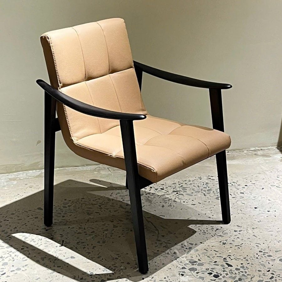 Ghế ăn Fynn DW13 mang vẻ đẹp hiện đại với thiết kế tựa lưng và đệm ngồi bọc da yên ngựa công nghiệp cao cấp. Phần tay vịn uốn cong nhẹ, tạo cảm giác thoải mái khi ngồi và góp phần tăng thêm tính thẩm mỹ cho không gian phòng ăn, phòng làm việc hoặc phòng tiếp khách tại gia.