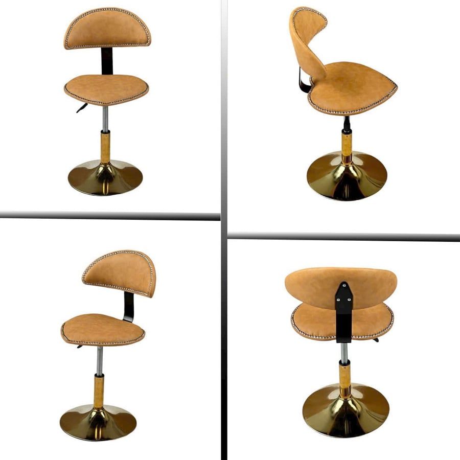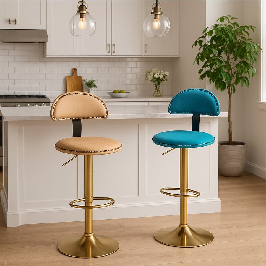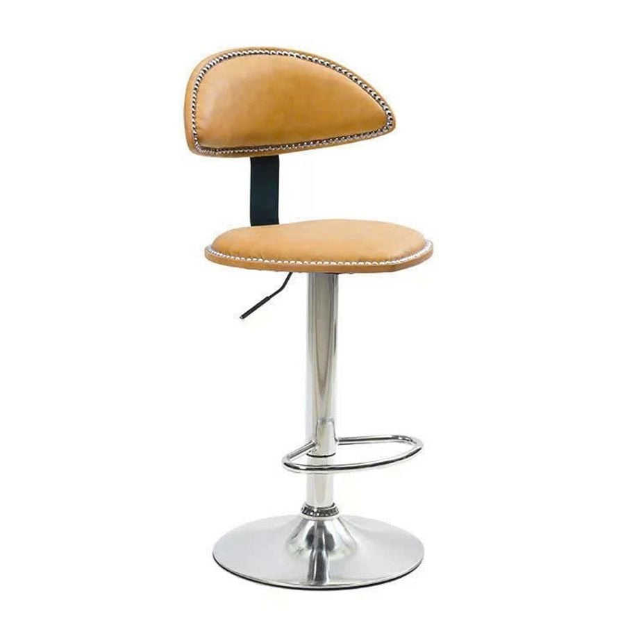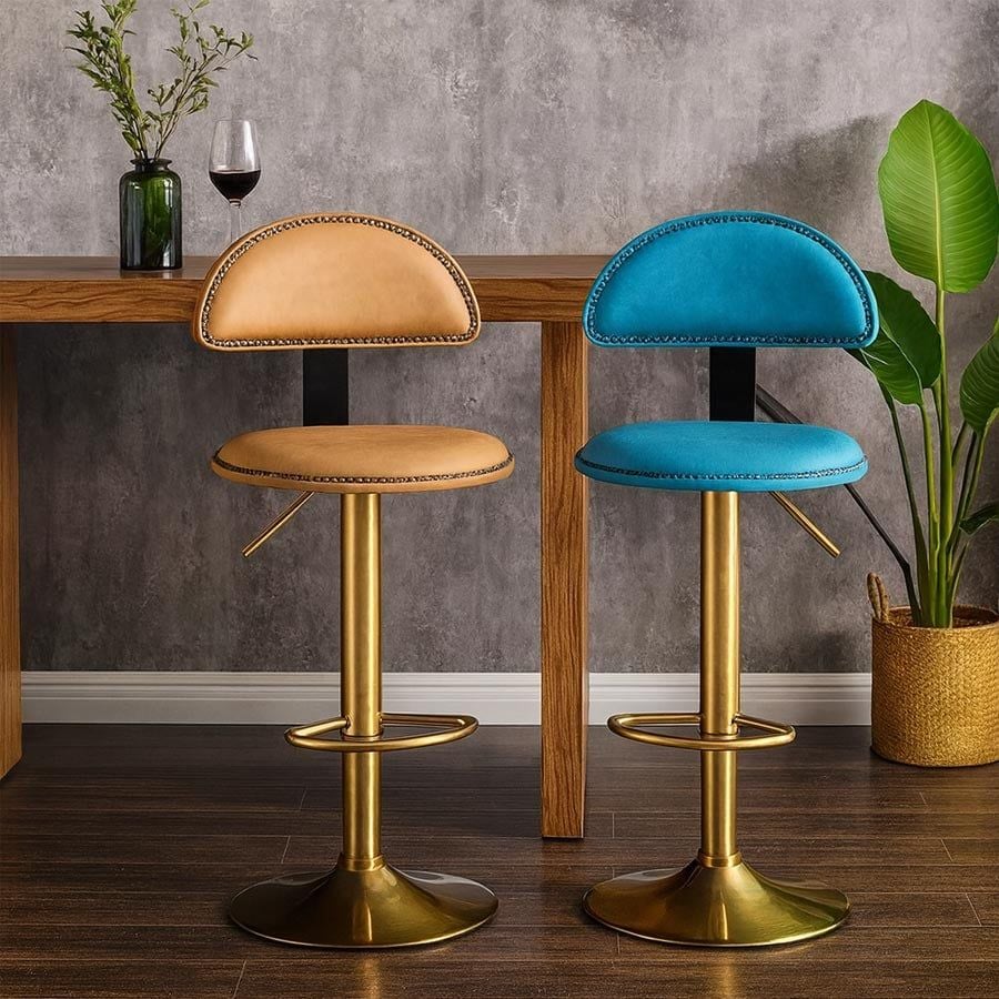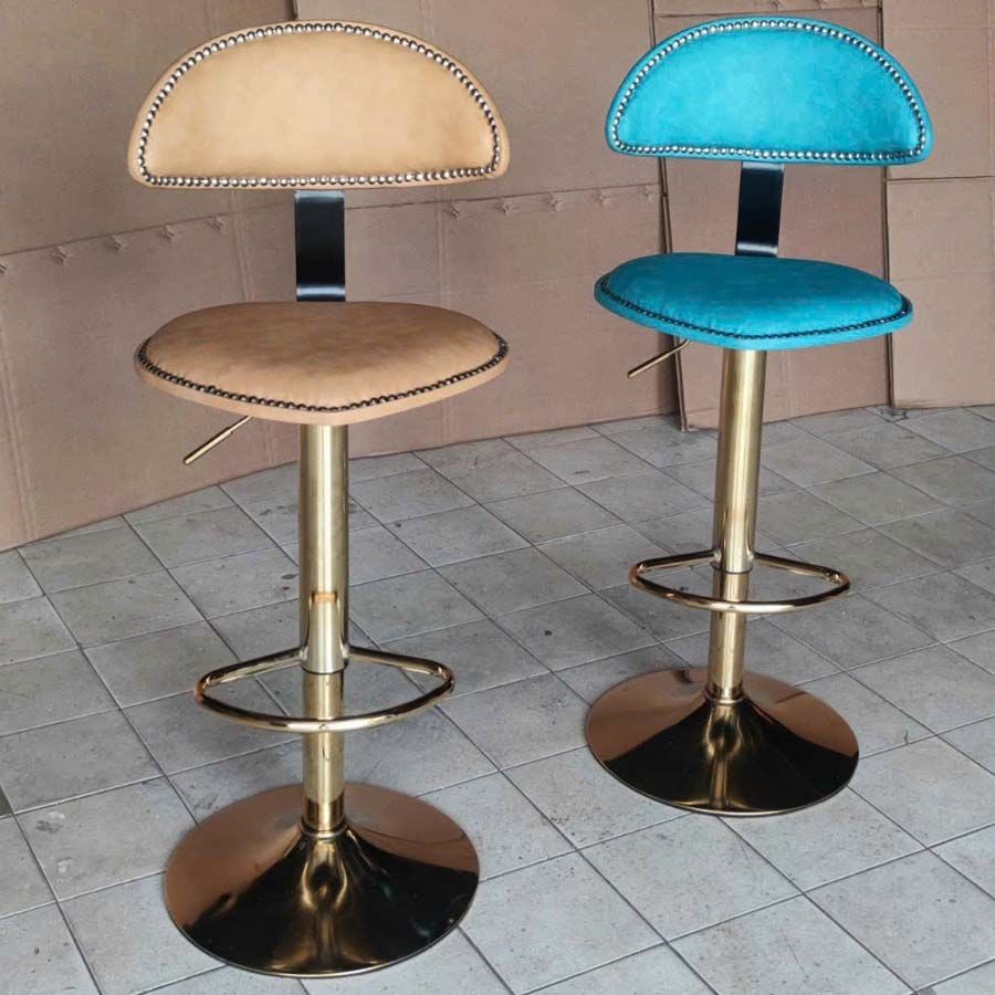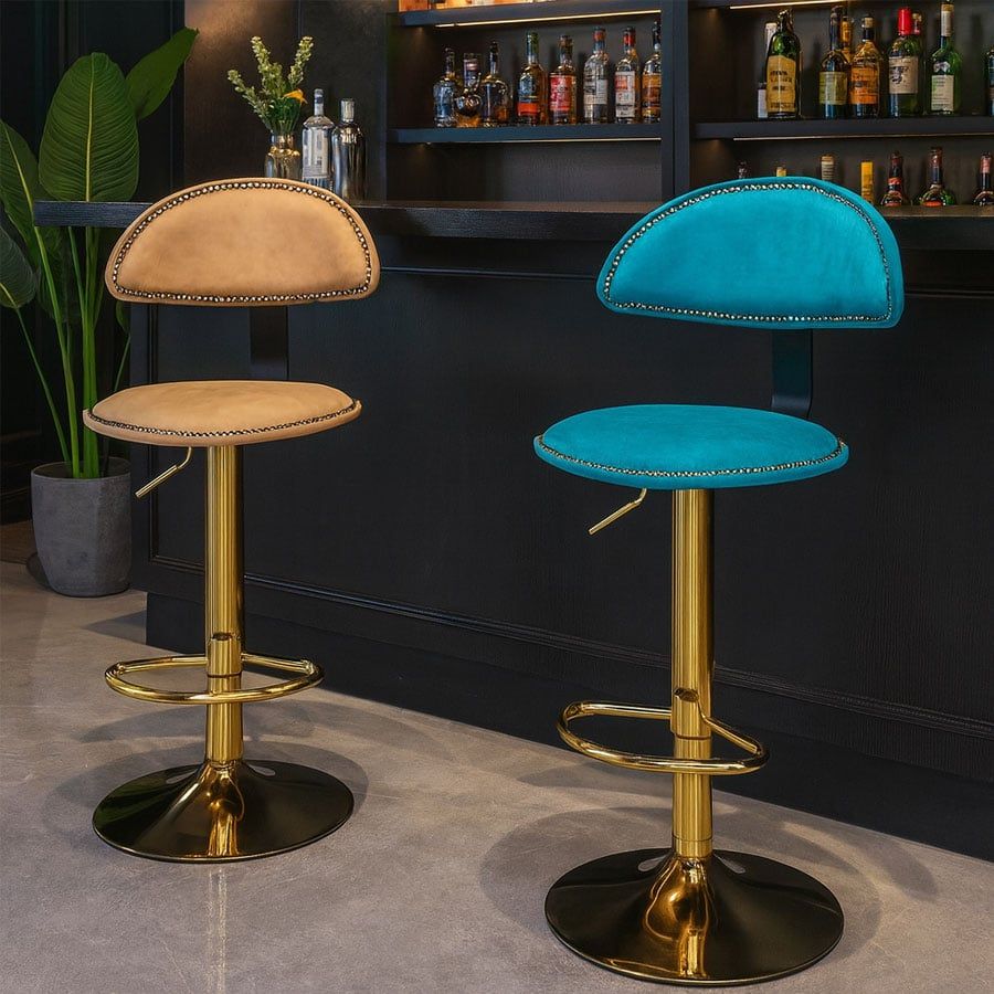 VS290C là mẫu ghế bar mang đậm dấu ấn cá tính với thiết kế lưng tựa nửa vòng bọc da và điểm nhấn bằng đường viền đinh tán kim loại sang trọng. Phần chân trụ thép mạ vàng kết hợp cùng đệm ngồi tròn thoải mái giúp sản phẩm nổi bật trong không gian quầy bar, đảo bếp, quán cafe hoặc lounge hiện đại.