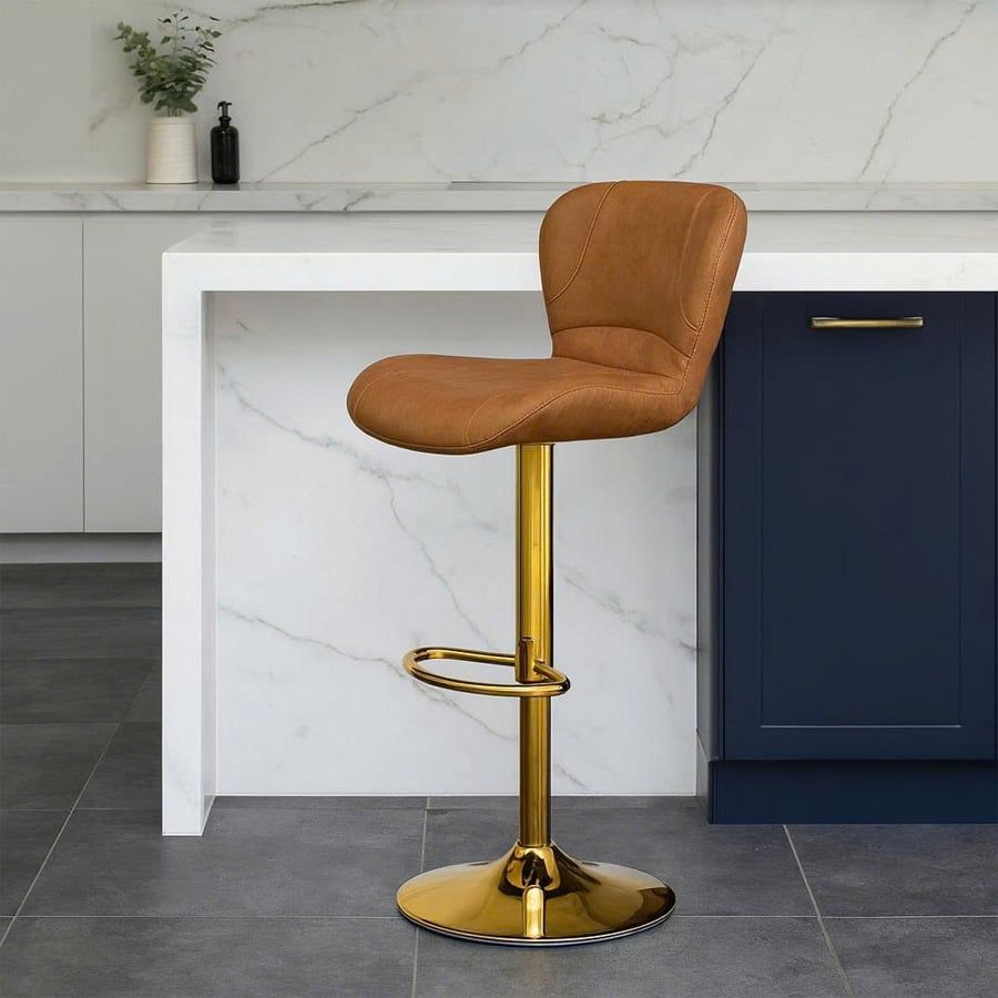 Phần chân trụ mạ vàng nổi bật giúp nâng tầm thẩm mỹ, đồng thời tích hợp cơ chế nâng hạ chiều cao linh hoạt từ 60 đến 80cm, phù hợp cho nhiều mục đích sử dụng khác nhau.