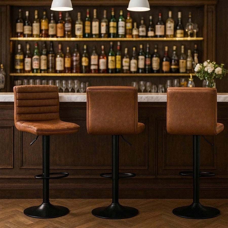 Thiết kế phần tựa cao và rộng giúp tăng cảm giác thoải mái, phù hợp với quầy bar gia đình, đảo bếp, lounge hoặc quán café sang trọng.