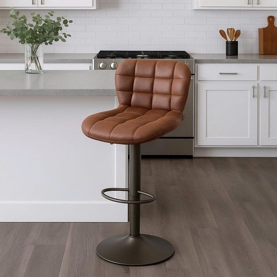 Ghế bar chân trụ VS24C nổi bật với kiểu dáng hiện đại, tựa lưng vuông vức tạo điểm nhấn mạnh mẽ nhưng vẫn giữ được sự mềm mại nhờ lớp đệm da simili cao cấp. Phần đệm ngồi dày dặn, các đường may caro tinh tế kết hợp cùng phần chân trụ chắc chắn với khả năng nâng hạ linh hoạt – mang đến sự tiện nghi và vẻ đẹp đẳng cấp cho không gian sống hoặc kinh doanh.