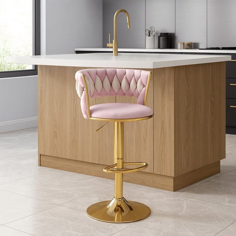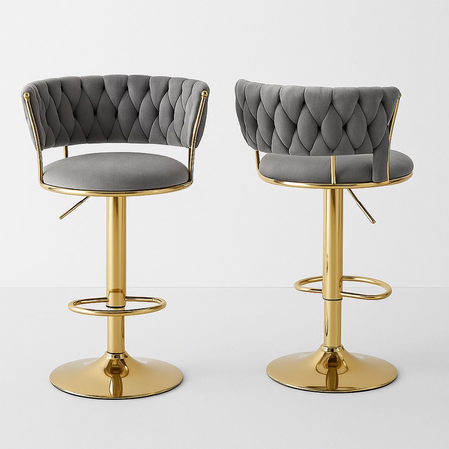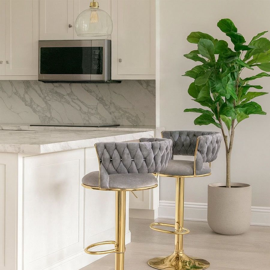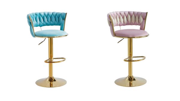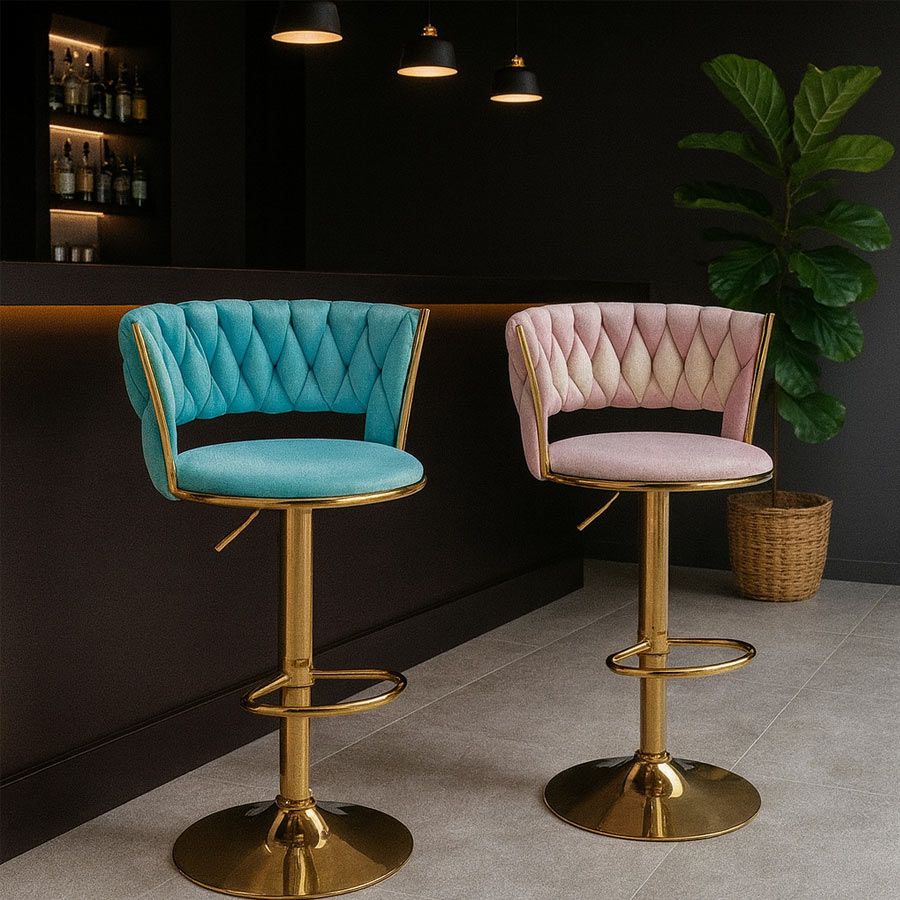 Ghế bar VS582C nổi bật với thiết kế thanh lịch, phần tựa lưng chần múi mềm mại cùng đệm ngồi tròn êm ái tạo sự thoải mái tối đa. Chân trụ tròn mạ vàng sáng bóng giúp tôn lên vẻ sang trọng, thích hợp với các không gian như quầy bar gia đình, đảo bếp, cafe cao cấp hay salon làm đẹp.
