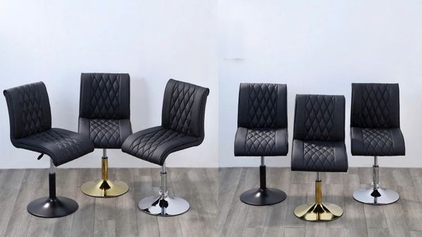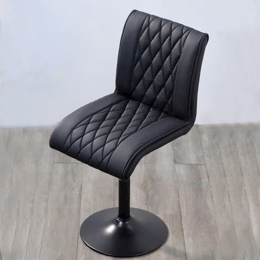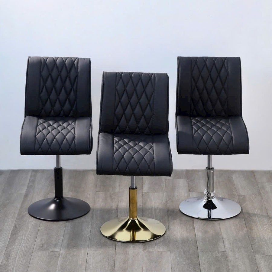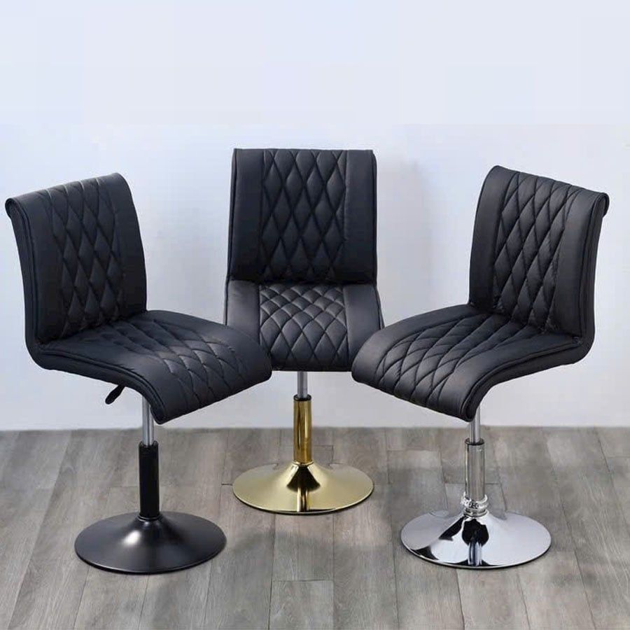 Ghế cafe chân trụ VS26L gây ấn tượng mạnh với thiết kế lưng cong ôm sát, tạo cảm giác êm ái và hỗ trợ tối đa cho người ngồi. Toàn bộ phần ghế được bọc da PU đen nhám cao cấp với các đường may quả trám tinh tế, mang lại cảm giác sang trọng và hiện đại. Phần chân trụ làm từ thép xi mạ vàng / xi / đen chắc chắn, có thể điều chỉnh độ cao linh hoạt phù hợp cho cả không gian quán cafe, nhà hàng hay bàn trang điểm, làm việc tại nhà.