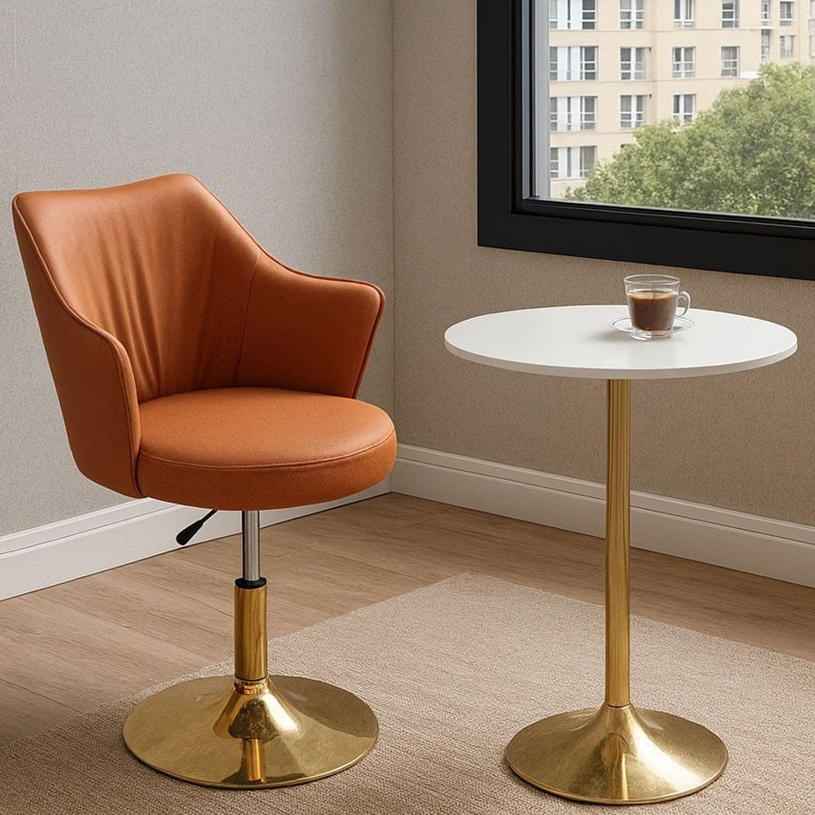 Ghế cafe VS626L gây ấn tượng với kiểu dáng nhỏ gọn, thanh lịch, thiết kế tay tựa nhẹ nhàng ôm lưng tạo cảm giác thoải mái khi ngồi. Phần chân trụ chắc chắn được mạ sắc vàng hoặc xi đen thời thượng giúp tăng tính thẩm mỹ và độ bền. Đây là lựa chọn lý tưởng cho các quán cafe, quầy bar, bàn ăn đảo bếp hoặc góc làm việc tại nhà.