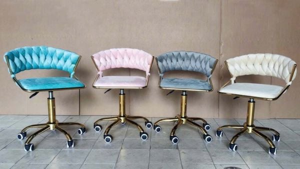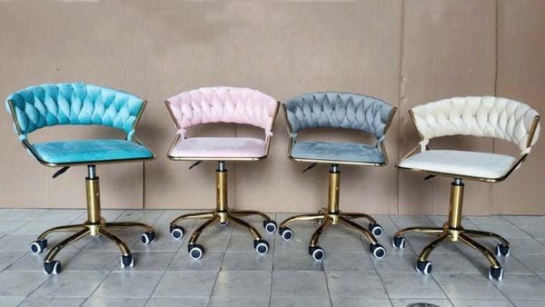 Chất liệu: Ghế xoay bọc vải nhung, chân xoay thép mạ vàng/ xi/ đen