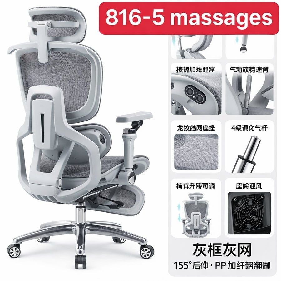 Ghế Công Thái Học NL816-5 Lưới Cao Cấp Có Massage Chống Đau Lưng