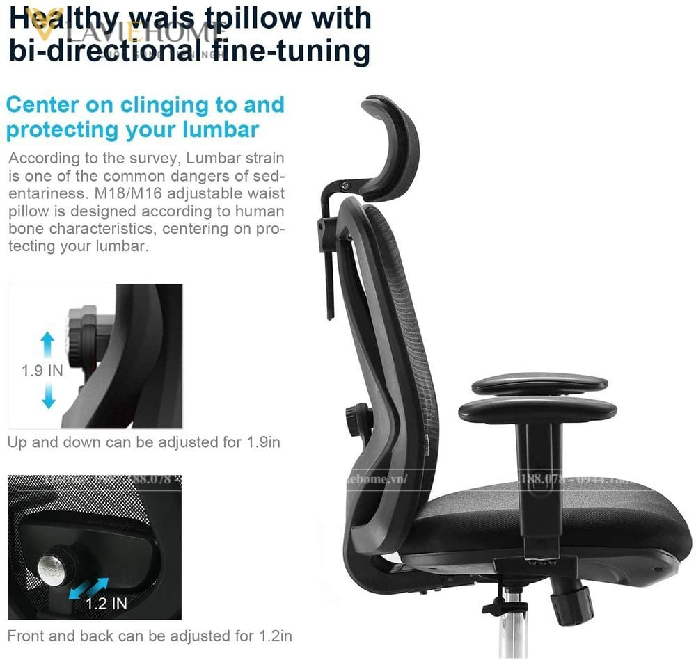 Sihoo M18 là một trong những mẫu ghế công thái học được ưa chuộng nhất hiện nay nhờ thiết kế thông minh, giúp bảo vệ cột sống, giảm đau lưng và duy trì tư thế ngồi chuẩn. Với đai lưng chống gù (lumbar) điều chỉnh linh hoạt, ghế giúp người dùng hạn chế tình trạng đau mỏi lưng, vai gáy khi làm việc lâu dài.