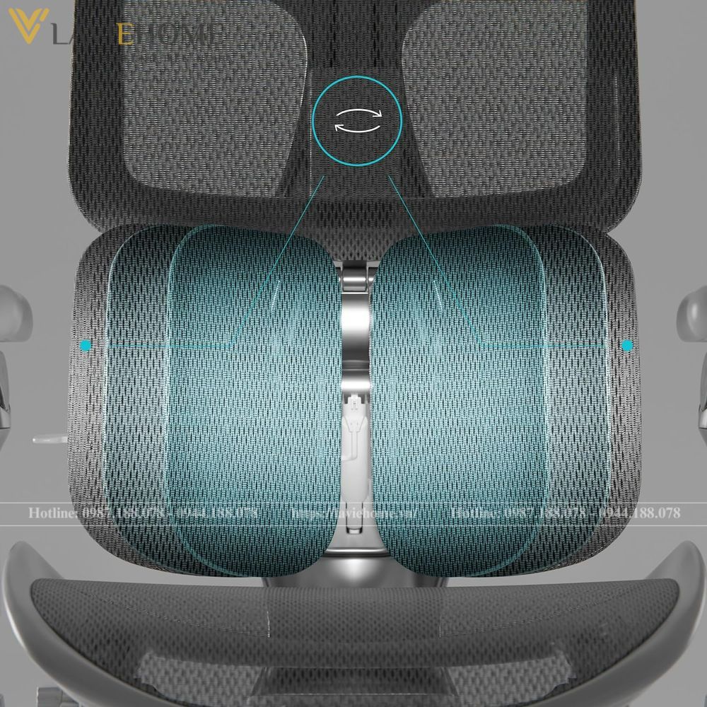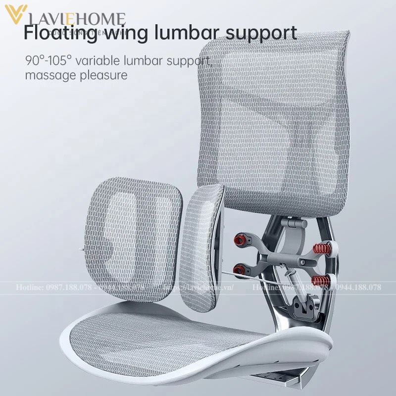 Bên cạnh đó, Sihoo S300 còn trang bị hệ thống hỗ trợ thắt lưng cánh nổi, giúp bảo vệ cột sống tối ưu. Khung ghế được chế tạo từ vật liệu hàng không, giúp người dùng cảm thấy nhẹ nhàng, dễ dàng điều chỉnh tư thế ngồi và đứng dậy mà không mất sức.