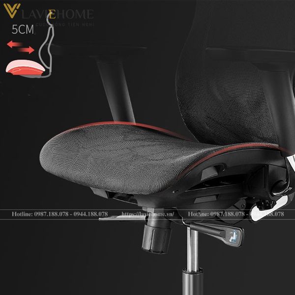 - Công nghệ trượt linh hoạt giúp điều chỉnh độ sâu ghế phù hợp với chiều dài chân.