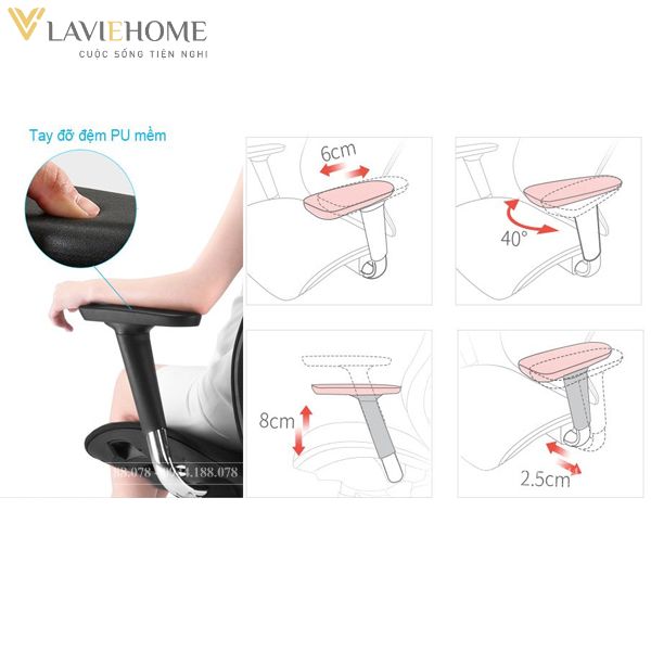 2. Tay Ghế 3D – Linh Hoạt Đa Chiều