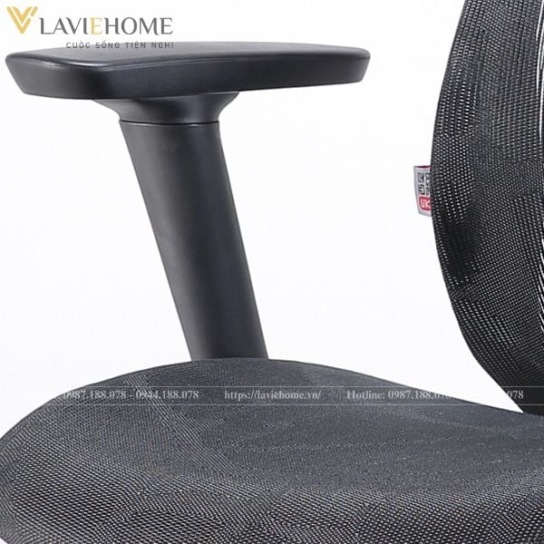 Chất liệu: Khung nhựa cao cấp, lưng lưới thoáng khí, đệm lưới đàn hồi, tay nhựa, chân hợp kim, piston class 3