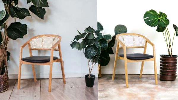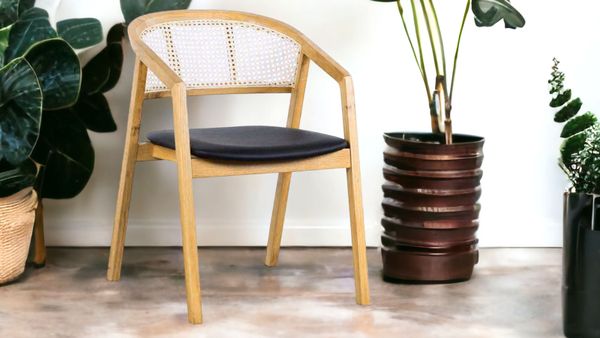 Ghế Molina LHG30 là mẫu ghế có tay vịn mang hơi hướng thiết kế Bắc Âu pha chút cổ điển với phần tựa lưng đan mây thủ công. Thiết kế ghế bo cong nhẹ theo dáng người ngồi giúp ôm trọn phần lưng và tay, tạo cảm giác thư giãn tối đa. Đệm ngồi bọc da công nghiệp cao cấp êm ái, dễ vệ sinh và có thể thay đổi màu sắc theo yêu cầu. Khung ghế và chân ghế được chế tác từ gỗ ASH tự nhiên, mang lại vẻ đẹp ấm áp, thanh thoát và độ bền cao. Ghế Molina phù hợp cho không gian phòng ăn, quán cafe cao cấp, khu tiếp khách và homestay.