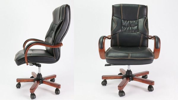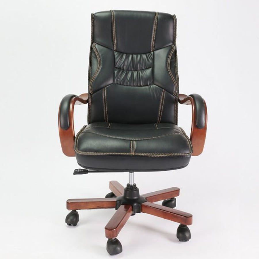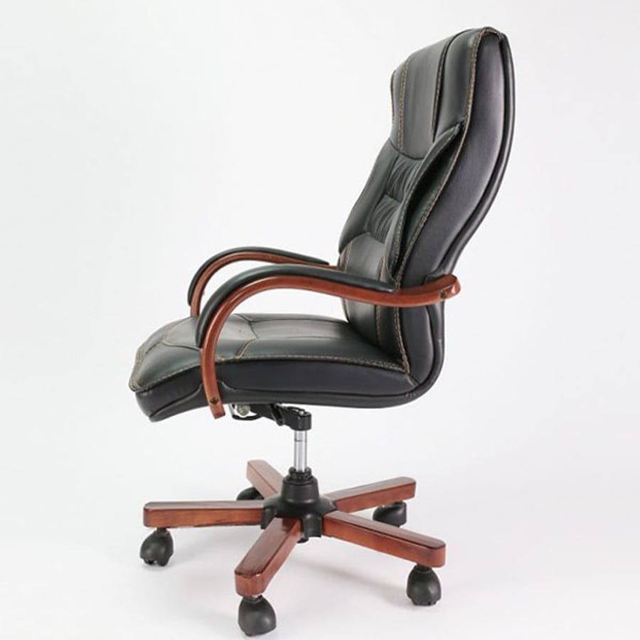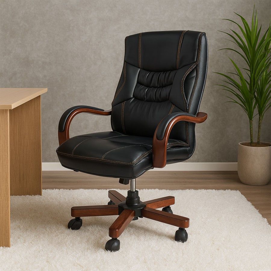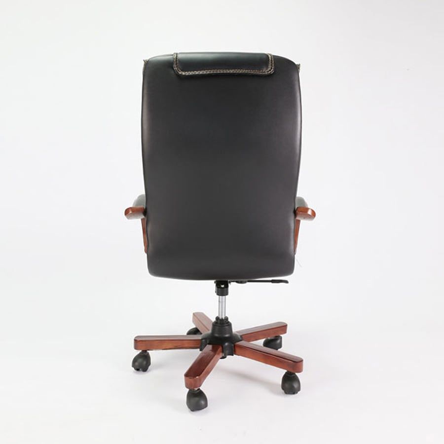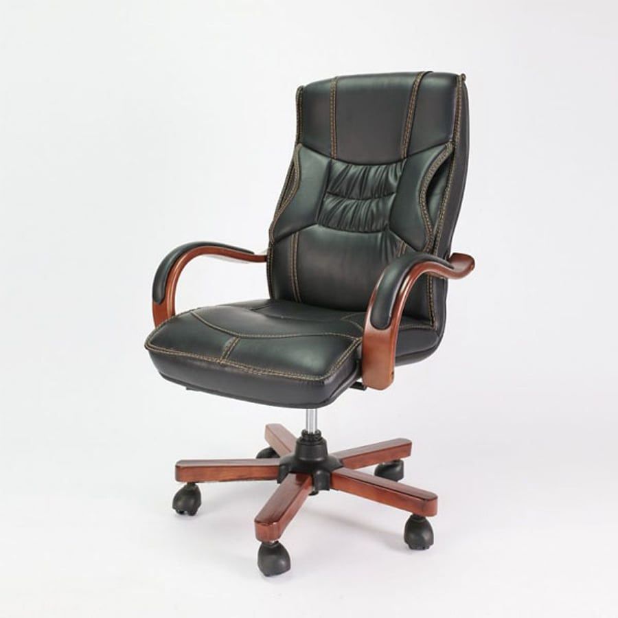 Phần tay vịn và chân xoay ốp gỗ tạo điểm nhấn đậm chất executive, tôn lên sự uy nghi và chuyên nghiệp cho phòng làm việc lãnh đạo.