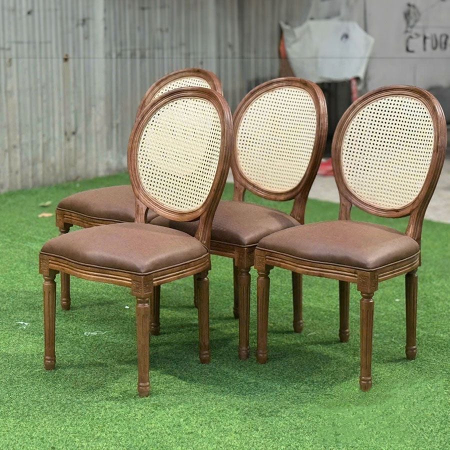 Ghế Louis không tay tựa mây LHG24 là biểu tượng của sự sang trọng pha lẫn nét duyên dáng cổ điển, phù hợp cho những không gian yêu cầu sự lịch thiệp và tinh tế. Tựa lưng dạng oval bo cong được đan mây thủ công tỉ mỉ, mang đến cảm giác thoáng khí và nhẹ nhàng. Đệm ngồi bọc da công nghiệp mềm mại giúp nâng cao sự thoải mái khi sử dụng. Chân ghế và khung gỗ được tiện thủ công theo phong cách Pháp cổ, tạo nên một tổng thể hoàn hảo từ kiểu dáng đến chi tiết.