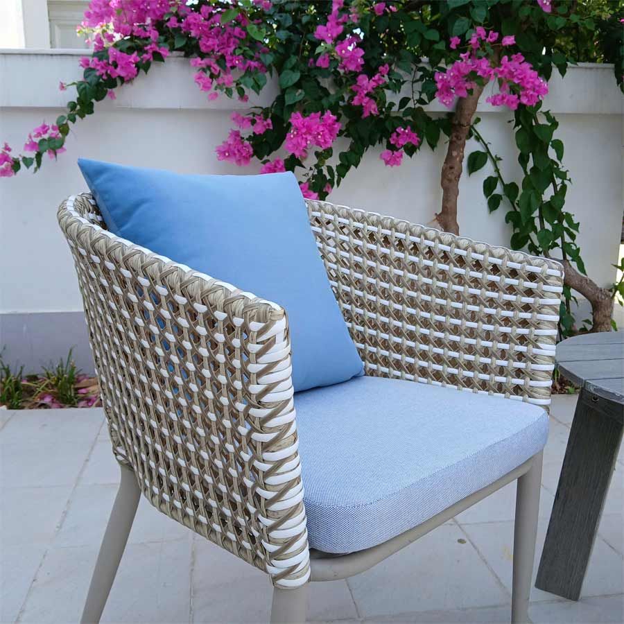 Ghế lưới ngoài trời LHAV06 là lựa chọn hoàn hảo để làm mới không gian sân vườn, ban công hoặc khu vực ngoài trời của quán cà phê và resort. Thiết kế hiện đại với khung nhôm đúc nhẹ nhàng, được phủ sơn tĩnh điện chống gỉ sét, kết hợp kỹ thuật đan dây nhựa giả mây thủ công tạo nên vẻ đẹp thanh lịch và bền chắc theo thời gian.