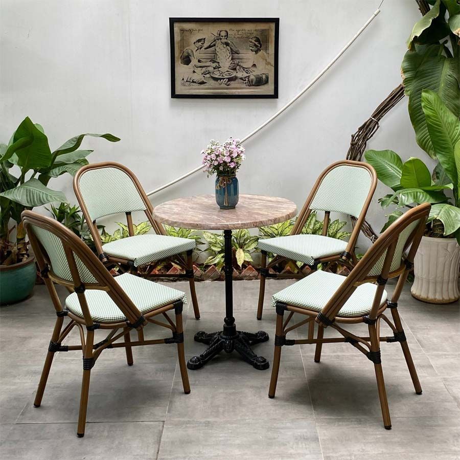- Khung nhôm đúc bền chắc: Chất liệu nhôm đúc giúp ghế cứng cáp, chịu lực tốt, không bị gỉ sét khi để ngoài trời.