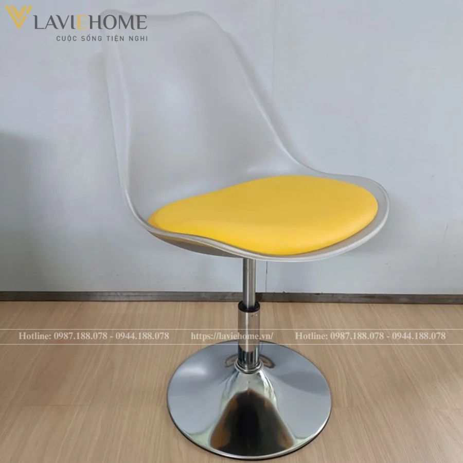 - Chân xoay linh hoạt: Ghế được thiết kế với chân xoay có khả năng điều chỉnh nâng hạ, giúp người dùng dễ dàng điều chỉnh chiều cao ghế theo bàn làm việc hoặc bàn ăn.