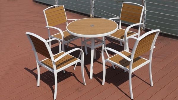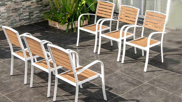 Chất liệu: Khung ghế nhôm đúc, Nan Polywood giả gỗ