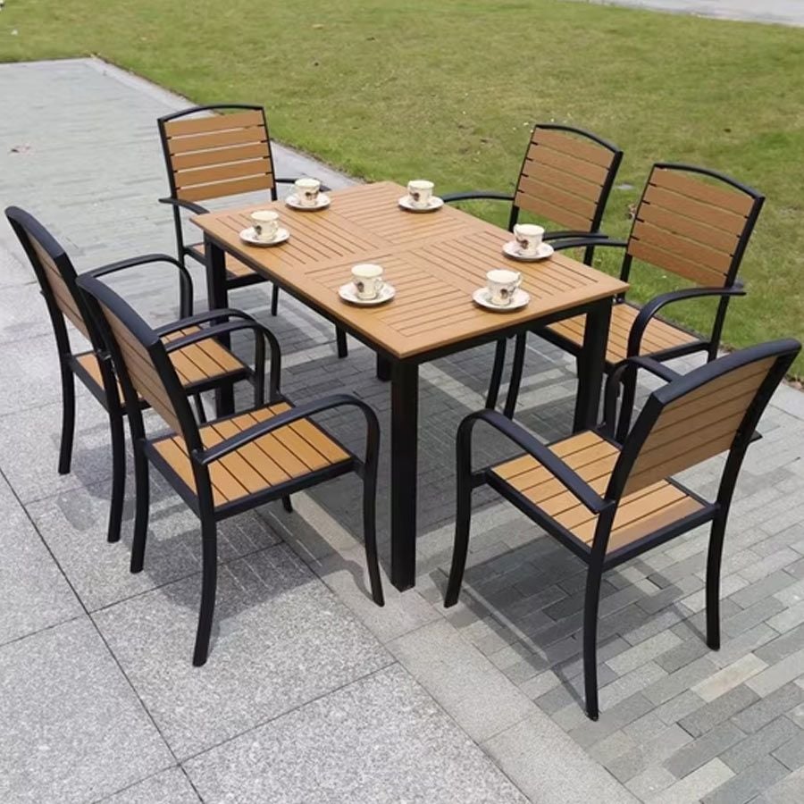Chất liệu: Khung ghế nhôm đúc, Nan Polywood giả gỗ