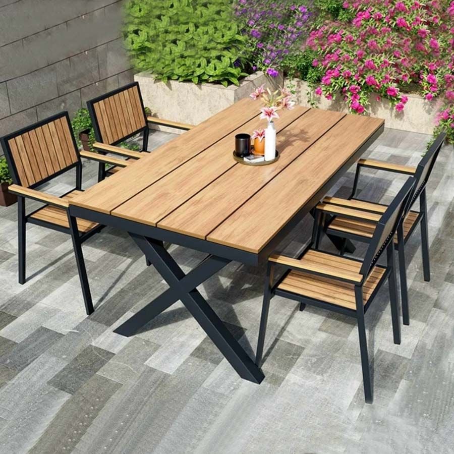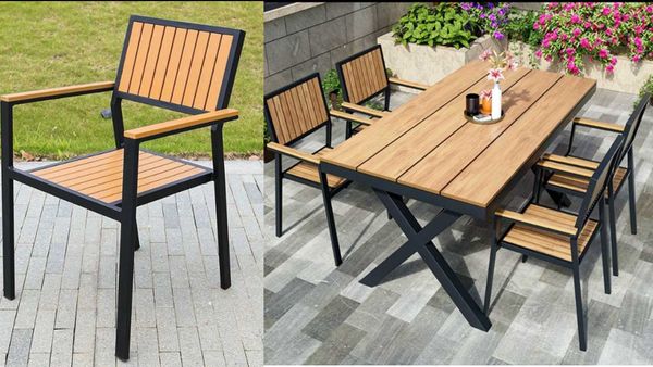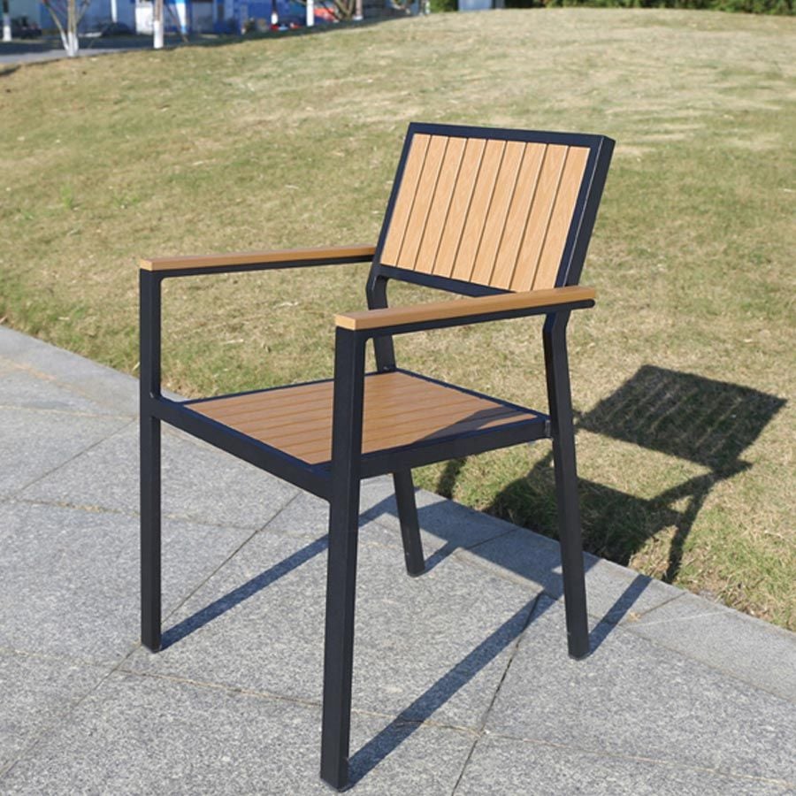 Chất liệu: Khung ghế nhôm đúc, Nan Polywood giả gỗ