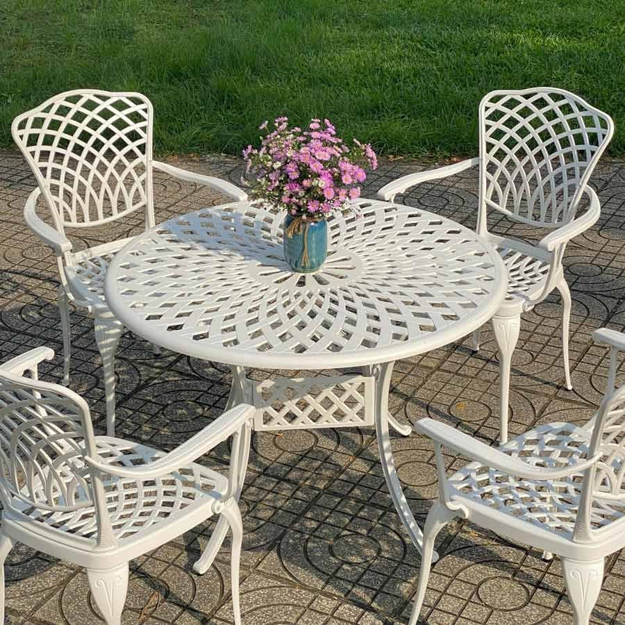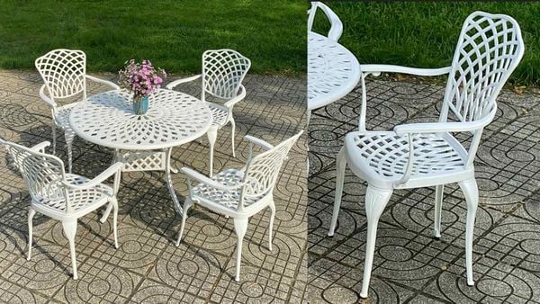 - Chất liệu nhôm đúc sơn tĩnh điện: Ghế được làm từ nhôm đúc với lớp sơn tĩnh điện giúp ngăn chặn gỉ sét và kháng thời tiết, bảo vệ sản phẩm khỏi các yếu tố môi trường và giữ cho ghế luôn trong tình trạng tốt.