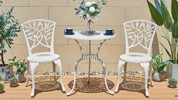 - Màu sắc thanh lịch: Có sẵn hai lựa chọn màu sắc trang nhã là trắng và đồng, giúp ghế dễ dàng phối hợp với nhiều phong cách nội thất và làm nổi bật không gian ngoài trời.