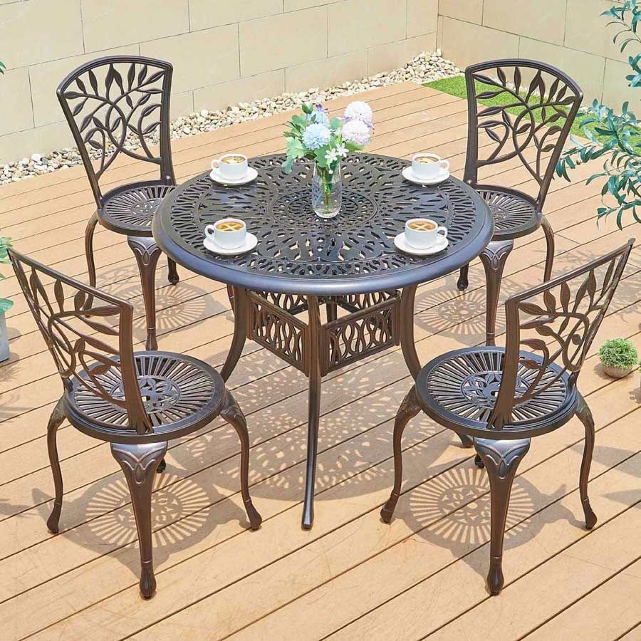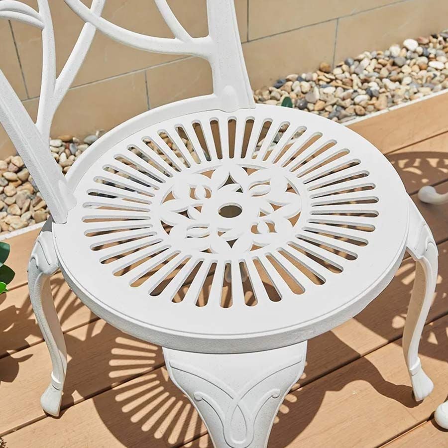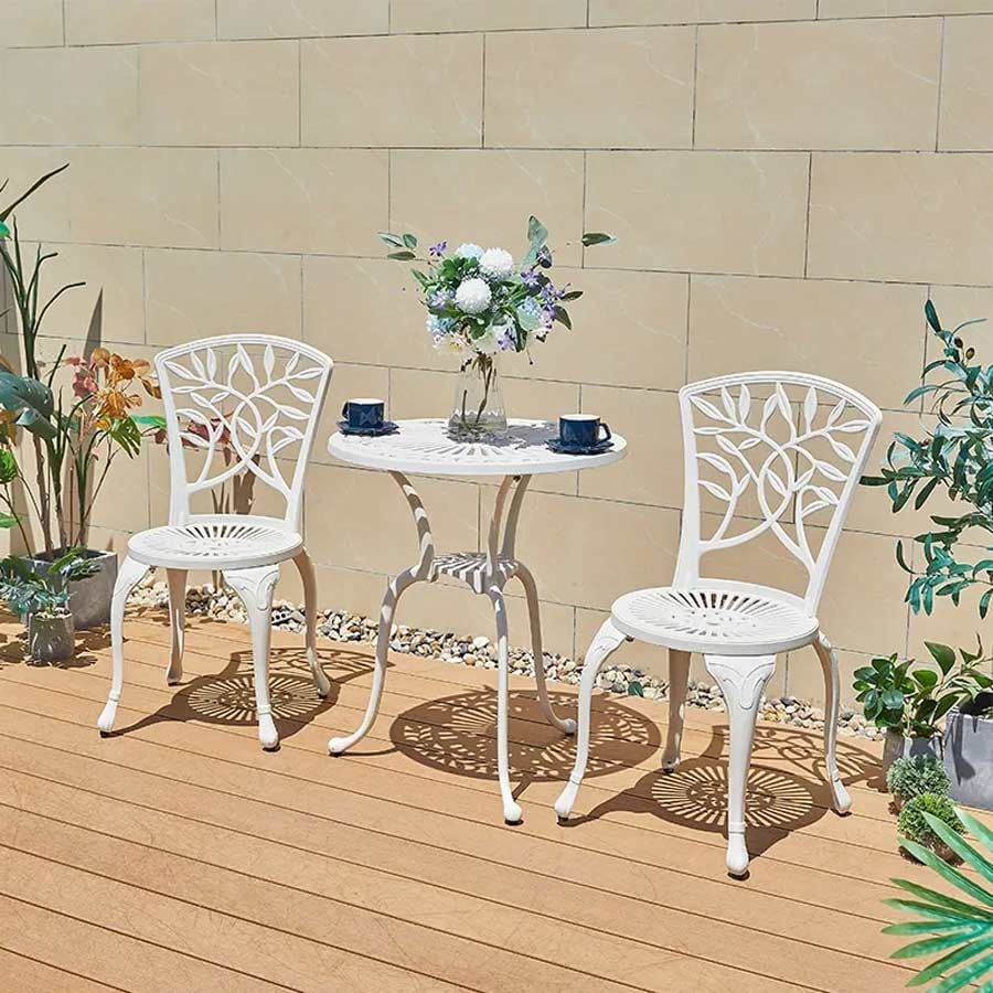 - Chất liệu nhôm đúc sơn tĩnh điện: Sản phẩm được chế tạo từ nhôm đúc bền bỉ với lớp sơn tĩnh điện, giúp chống gỉ sét và bảo vệ khỏi những yếu tố thời tiết, đảm bảo độ bền lâu dài cho ghế.
