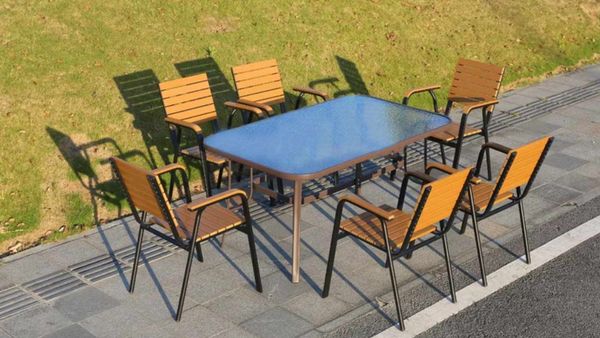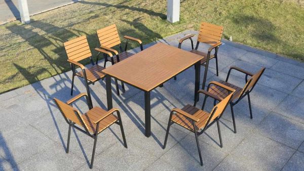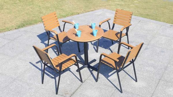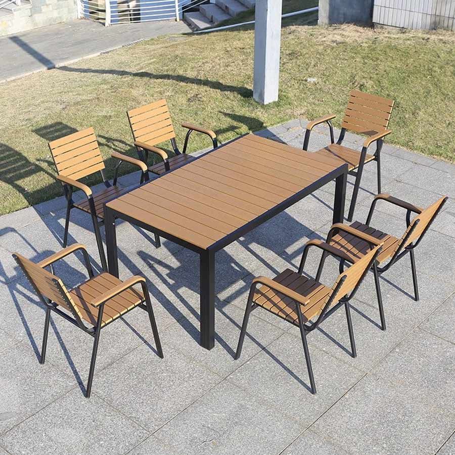 Chất liệu: Khung ghế nhôm đúc, Nan Polywood giả gỗ