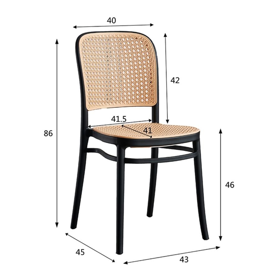 Chất liệu: Khung nhựa đúc, lưng và đế ngồi bằng nhựa giả mây