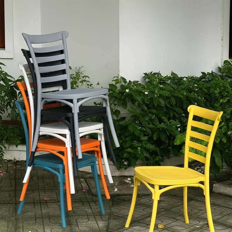 Với chất liệu nhựa PP cao cấp, ghế có khả năng chống thấm nước, dễ dàng vệ sinh và đặc biệt phù hợp cho cả môi trường trong nhà lẫn ngoài trời.