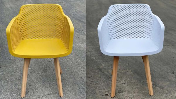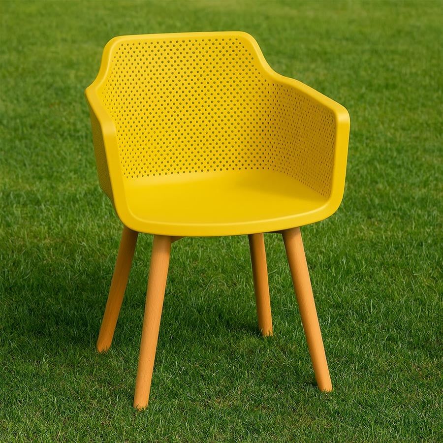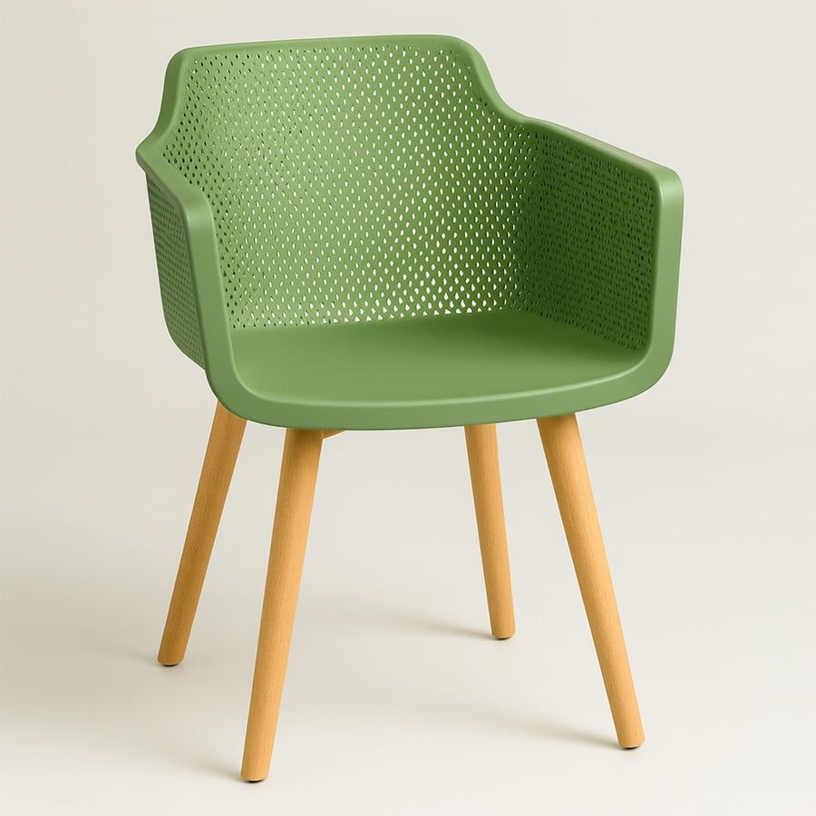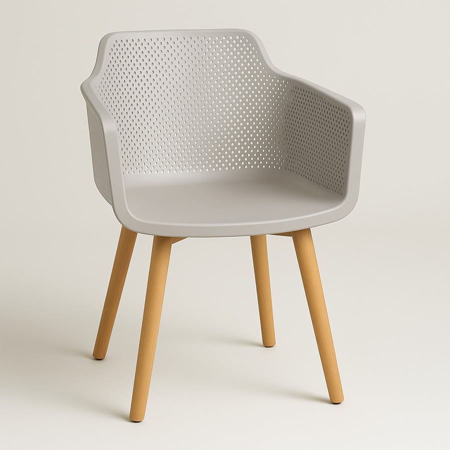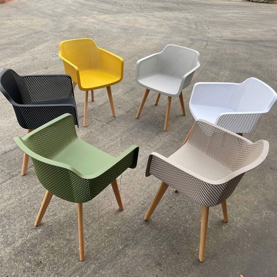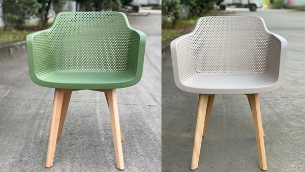 Ghế nhựa đúc S3062B kết hợp hài hòa giữa phong cách hiện đại và sự tiện dụng, phù hợp cho nhiều không gian như phòng ăn, quán cafe, khu vực tiếp khách hay sân vườn. Phần ghế được làm từ nhựa PP cao cấp, bền chắc, chống ẩm mốc và dễ vệ sinh. Thiết kế lưng ghế đục lỗ tạo độ thoáng khí, tay vịn liền khối mang đến sự thoải mái khi ngồi lâu. Chân gỗ beech tự nhiên chắc chắn, màu sáng giúp tổng thể sản phẩm thêm phần ấm áp và sang trọng.