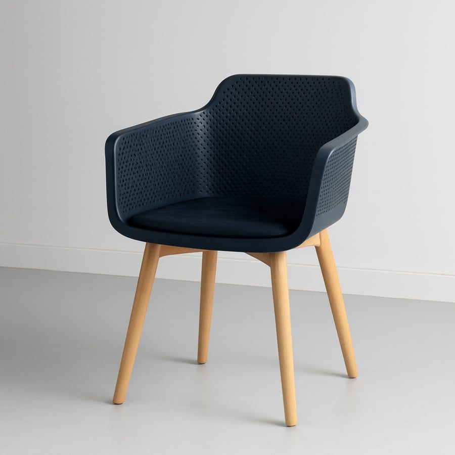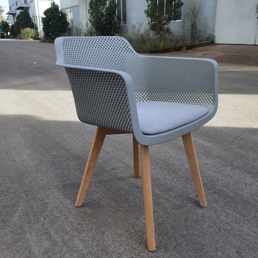 Chất liệu: Nhựa PP cao cấp, chân gỗ beech, nệm bọc nỉ