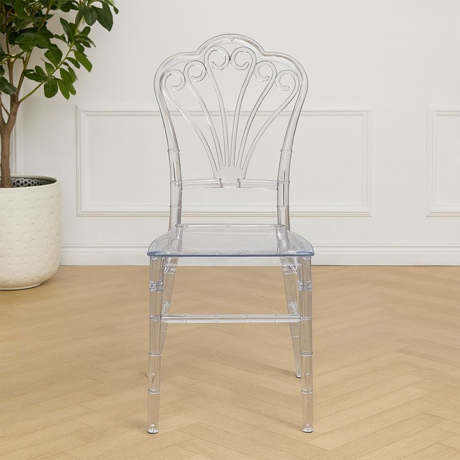 Ghế nhựa sự kiện trong suốt mang phong cách hiện đại và tinh tế, phù hợp cho các không gian tổ chức tiệc cưới, sự kiện, hội nghị. Với thiết kế trong suốt độc đáo, ghế không chỉ tạo cảm giác sang trọng mà còn dễ dàng phối hợp với nhiều phong cách trang trí khác nhau.