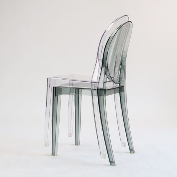 - Thiết kế trong suốt: Màu khói trong suốt của ghế tạo cảm giác thanh thoát, giúp không gian trở nên thoáng đãng và rộng rãi hơn, phù hợp với nhiều phong cách trang trí nội thất.