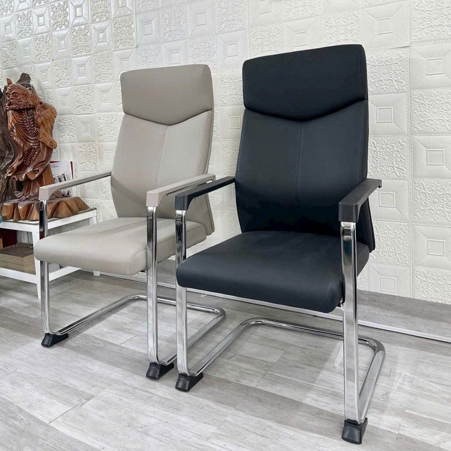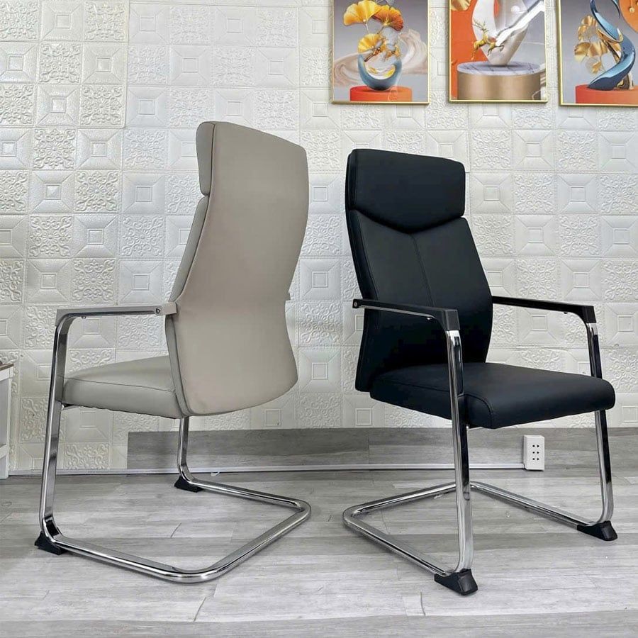 - Chất liệu: Tựa lưng bọc nệm da, tay sắt mạ crom ốp nhựa, chân mạ crom
