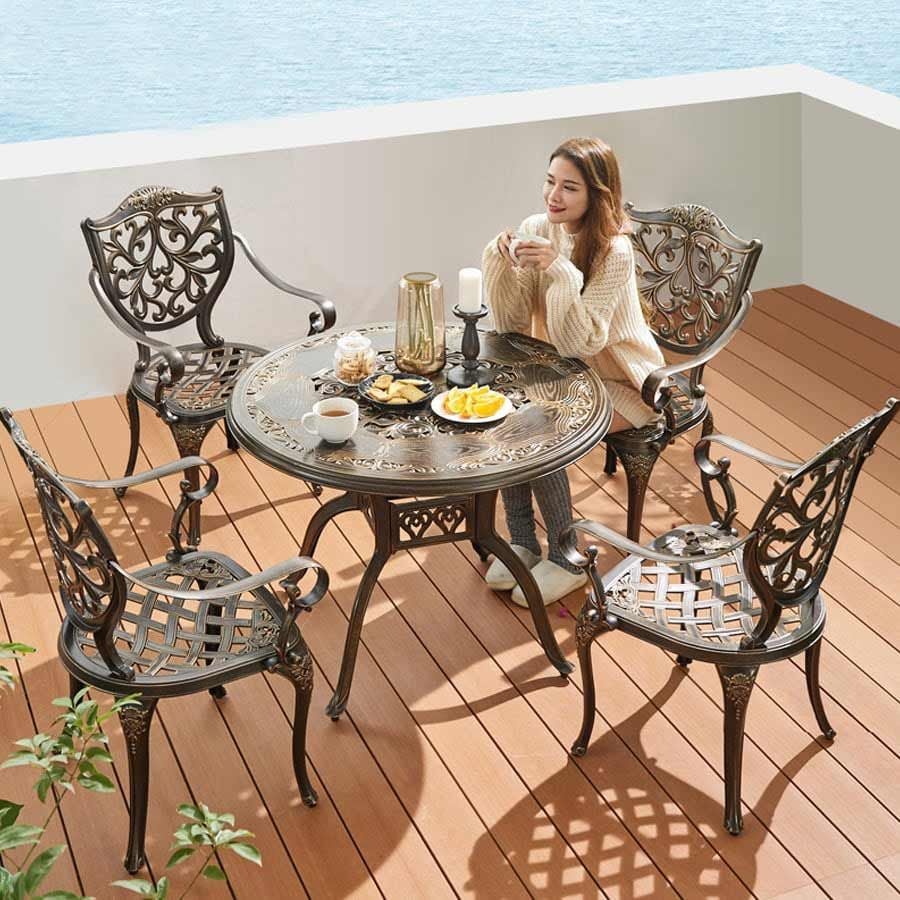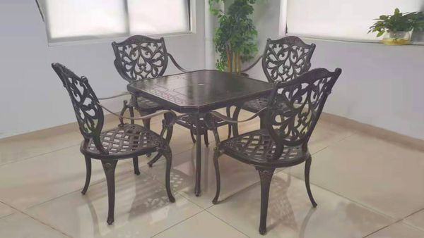 - Chất liệu nhôm đúc sơn tĩnh điện: Được làm từ nhôm đúc chắc chắn với lớp sơn tĩnh điện bảo vệ, ghế có khả năng chống gỉ sét và chịu được tác động từ môi trường bên ngoài, đảm bảo độ bền lâu dài.