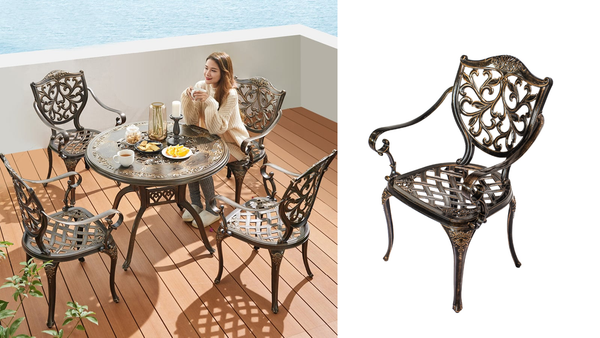- Màu sắc đồng sang trọng: Màu sắc đồng không chỉ mang lại vẻ đẹp tinh tế mà còn giúp ghế dễ dàng hòa hợp với các kiểu dáng nội thất và phong cảnh xung quanh.