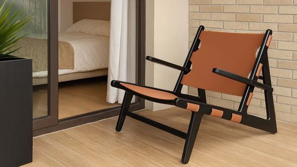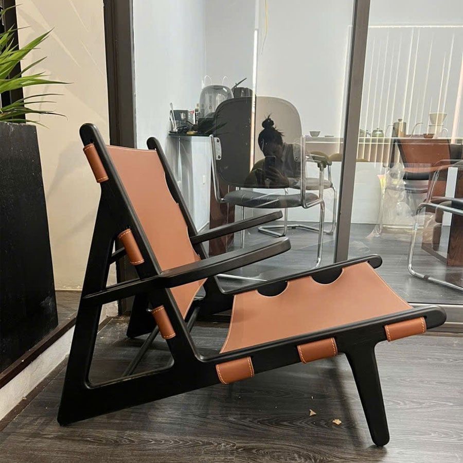 Lấy cảm hứng từ phong cách Bắc Âu cổ điển, ghế thư giãn Hunting RW15 gây ấn tượng bởi thiết kế khung gỗ vững chãi và phần dây đỡ bằng da yên ngựa công nghiệp chắc chắn. Sự kết hợp hài hòa giữa gỗ sồi tự nhiên và da tạo nên vẻ ngoài mạnh mẽ, cá tính nhưng vẫn giữ được sự thanh lịch và tinh tế. Dáng ngồi thấp, tựa lưng ngả nhẹ cùng tay vịn cong mềm giúp người dùng thư giãn tối đa sau một ngày làm việc căng thẳng.