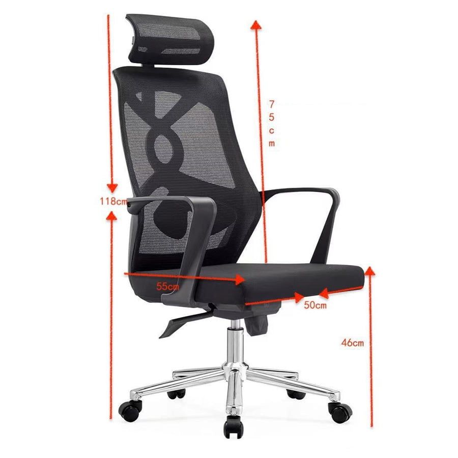 Chất liệu: Tựa lưng lưới, mặt đệm êm ái, tay nhựa PP cao cấp, chân sao nhựa hoặc chân mạ crom