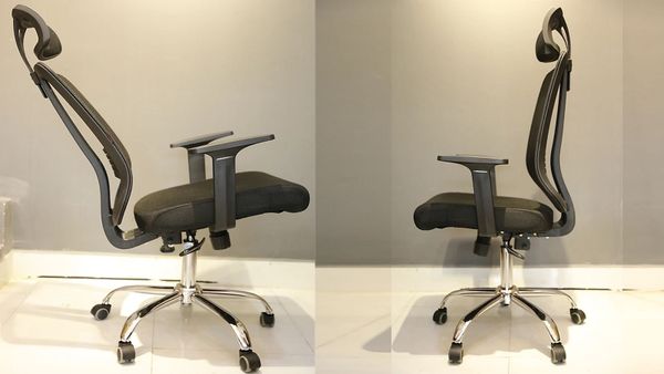 Lưng ghế bọc lưới thoáng khí, giúp hạn chế tích tụ mồ hôi khi ngồi lâu