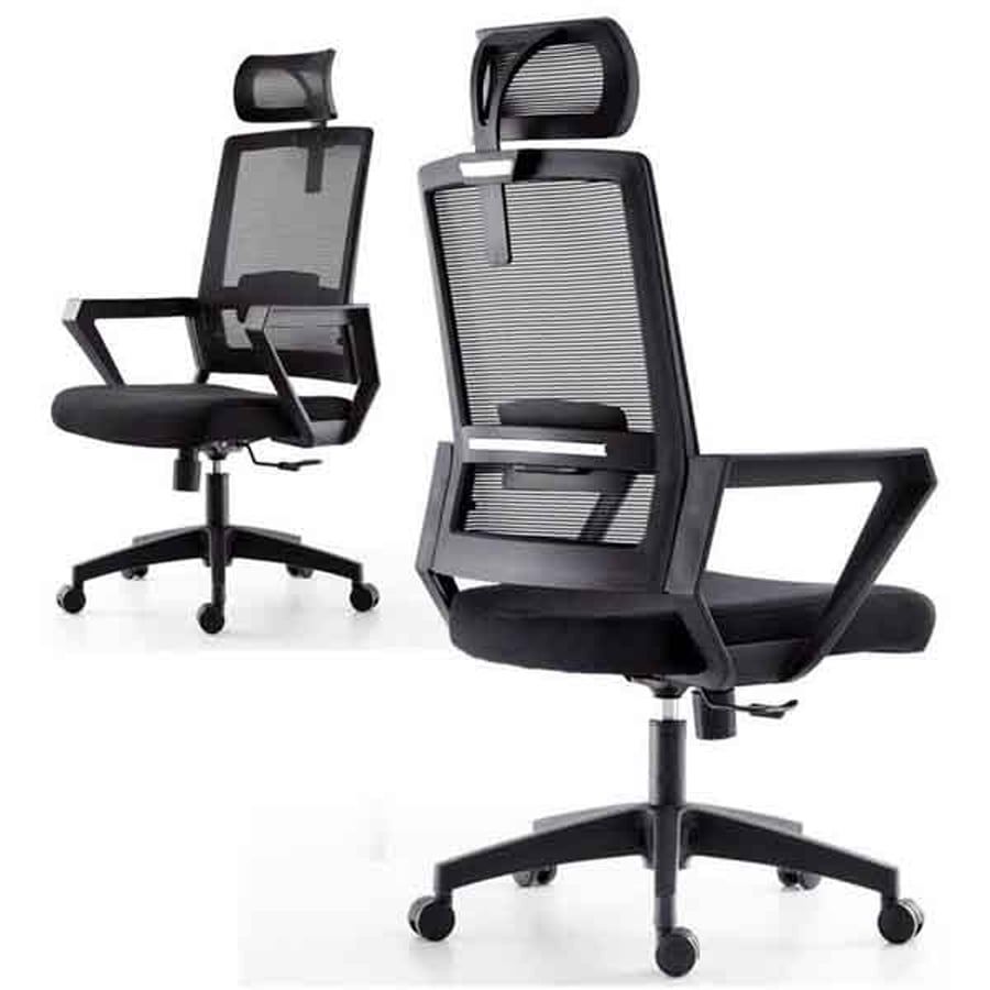 Chân xoay bền bỉ, giúp di chuyển linh hoạt và dễ dàng trong không gian làm việc. Ghế có tựa đầu bọc lưới, giúp giảm căng thẳng và nâng cao hiệu suất làm việc.