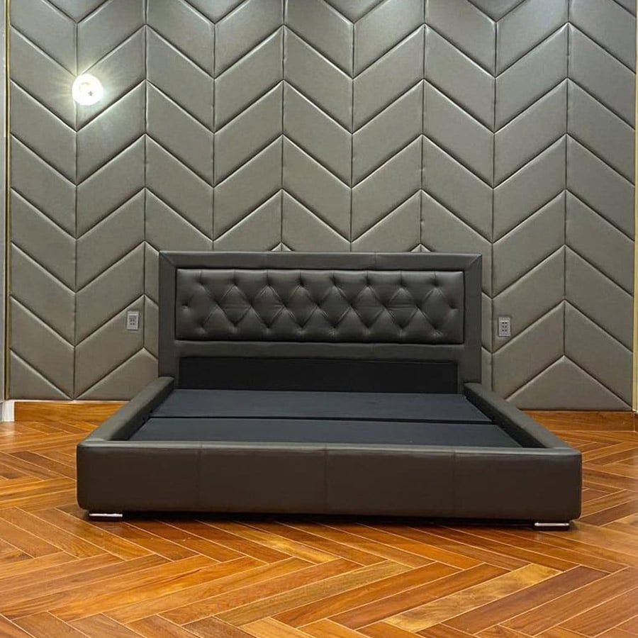 Chi tiết thiết kế: Thành giường dày 15mm, đầu giường may nút caro sang trọng